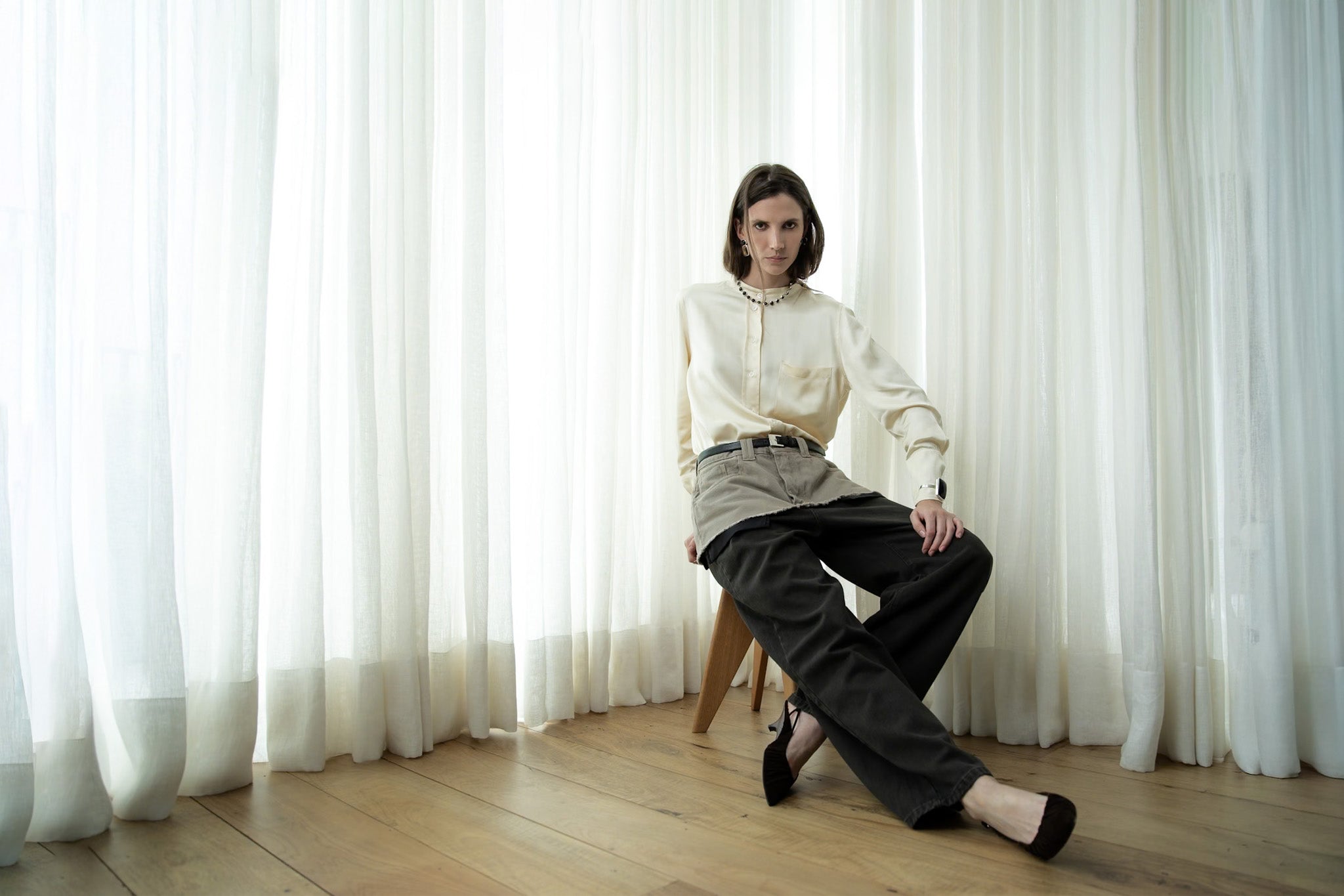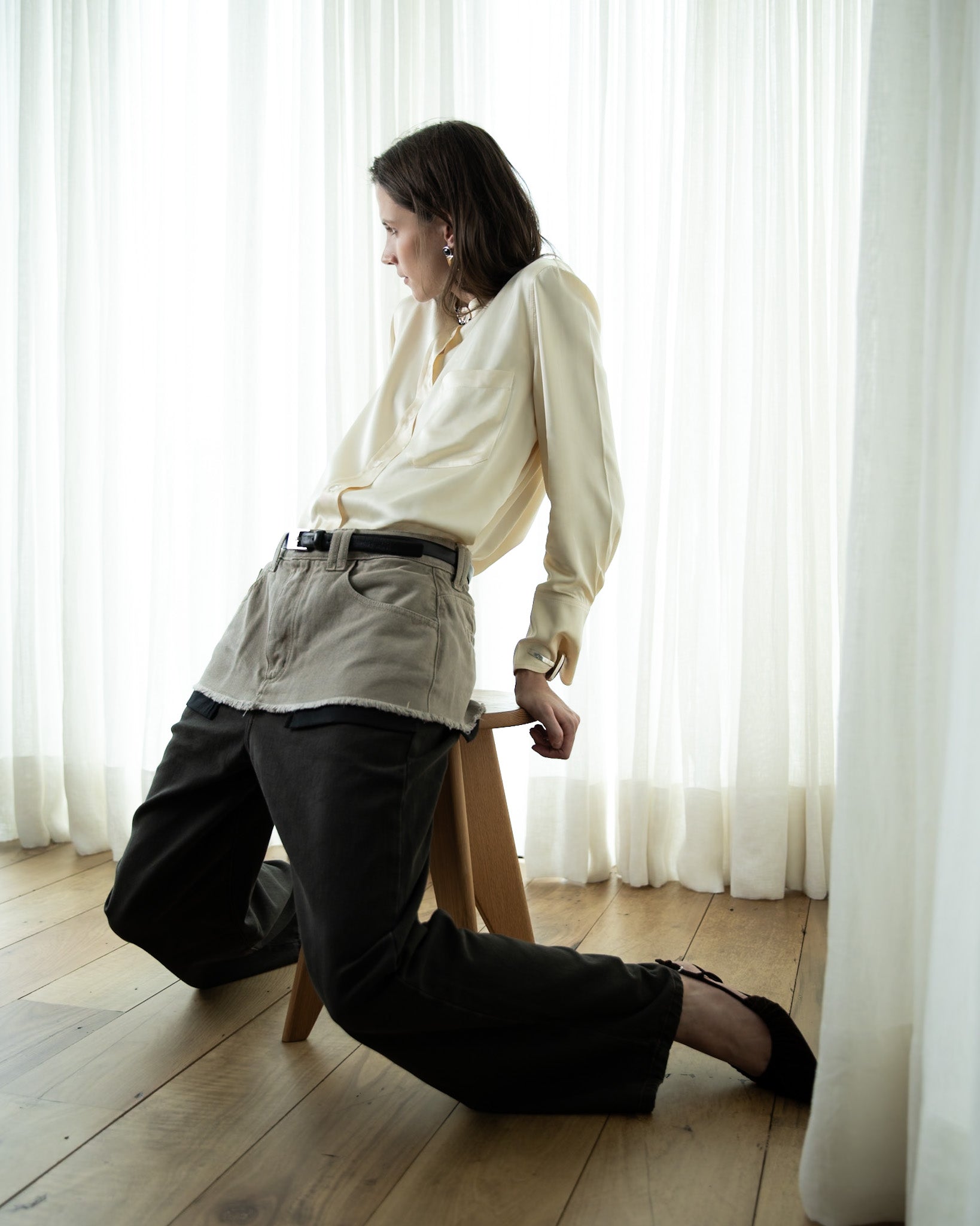 Camisa Acetinada Creme