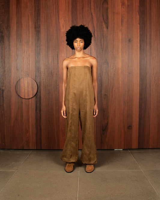 Vestido Mini Tomara que Caia Voil de Linho Marrom