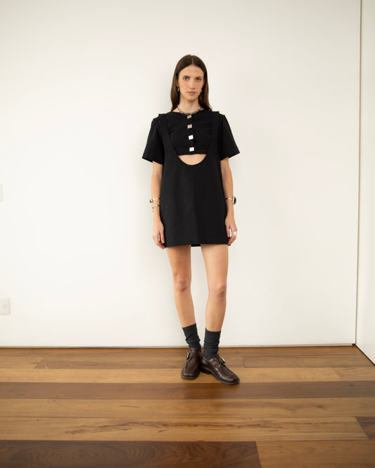 EsgotadoVestido Suspensório Copenhagen Preto