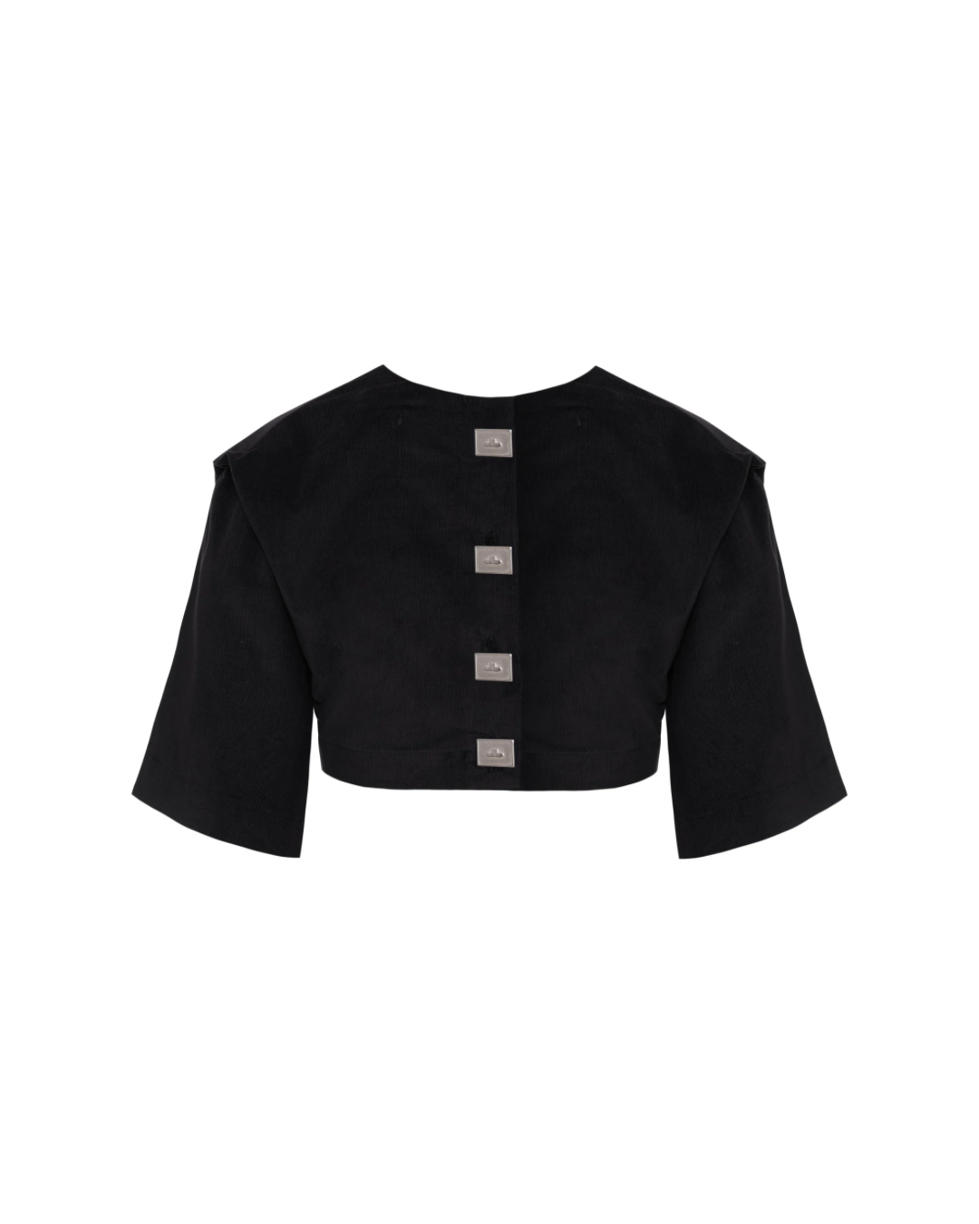 - Camiseta curta no mesmo tecido de veludo cotelê, com detalhes de botões exclusivos personalizados Lourie