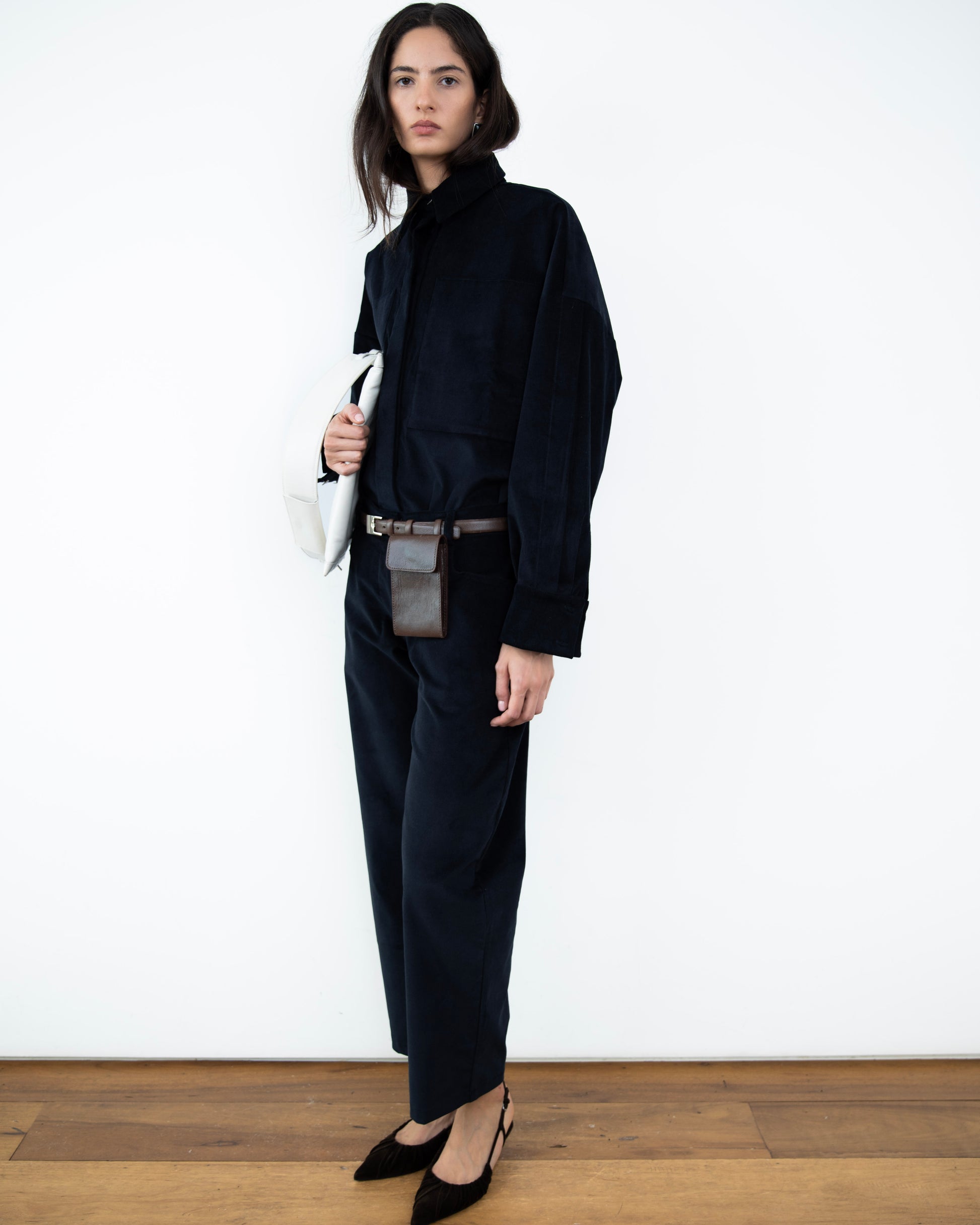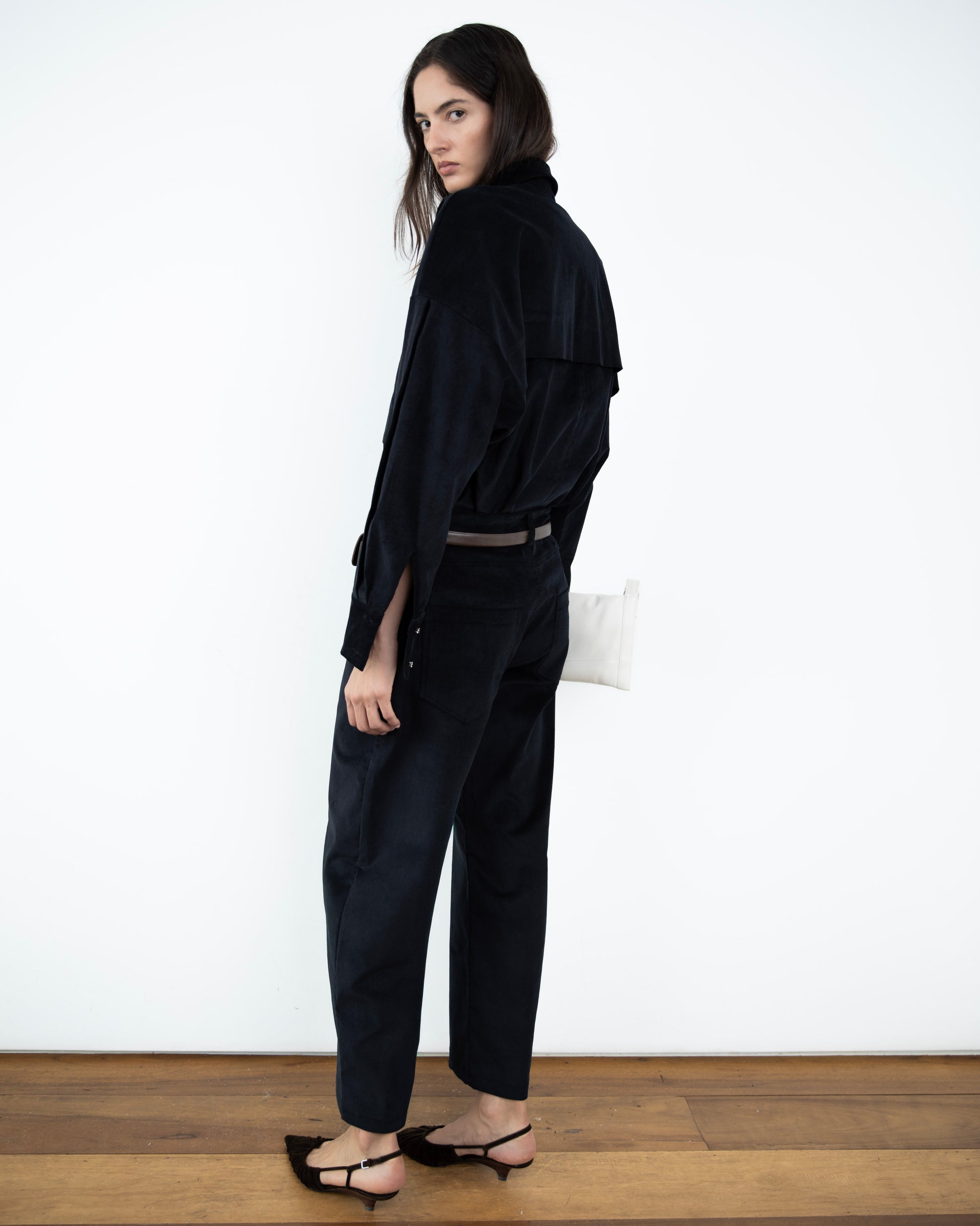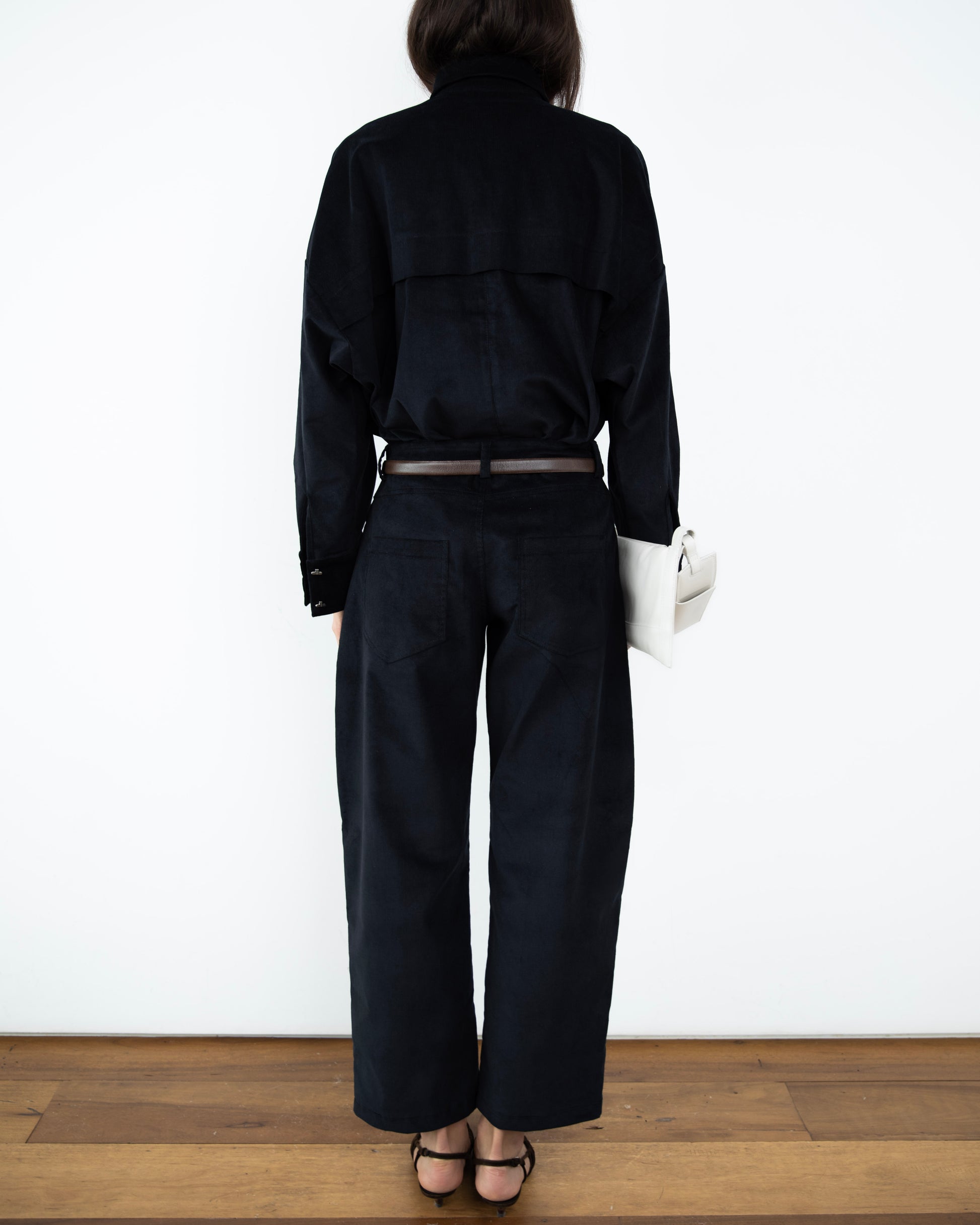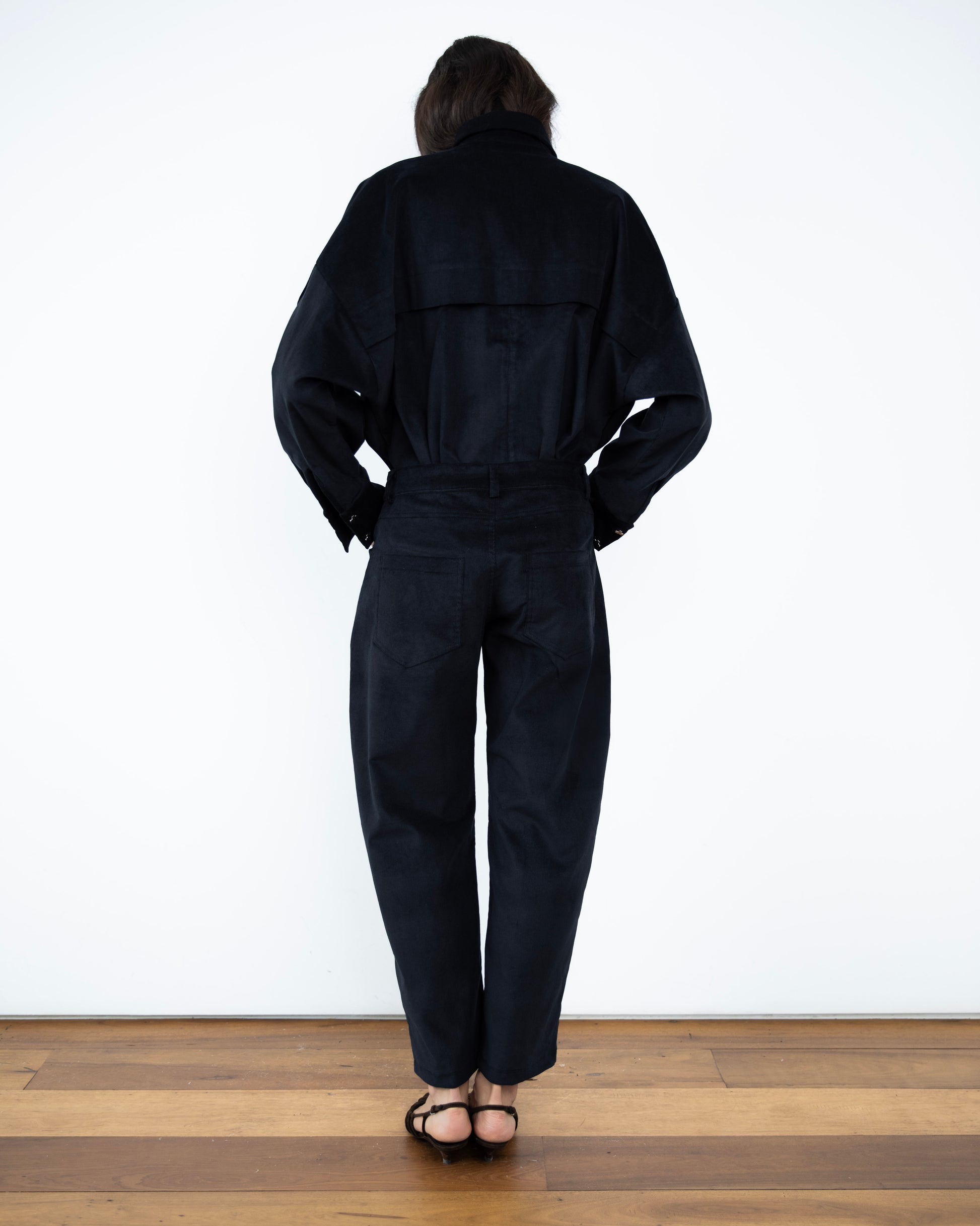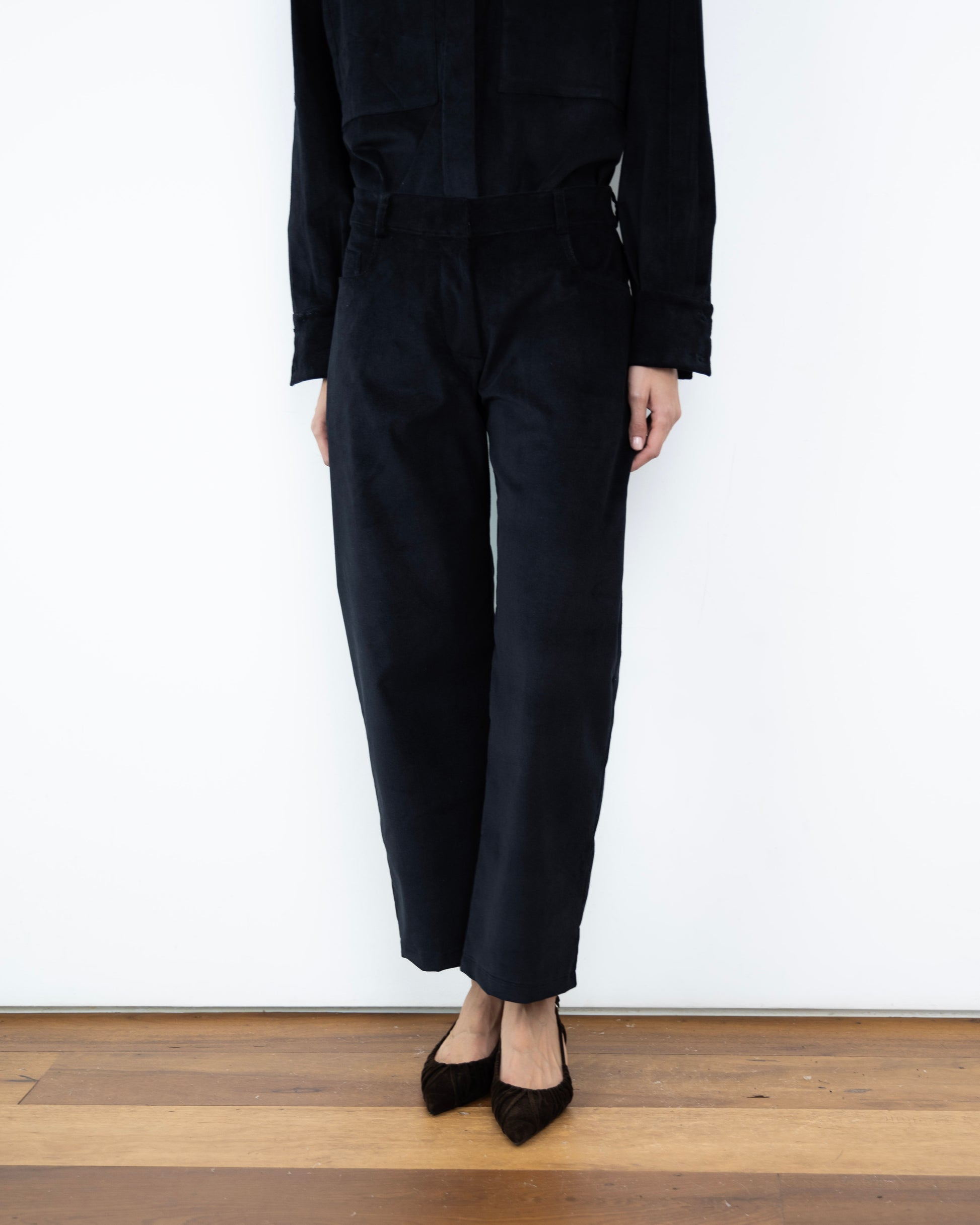 - Calça Barrel Veludo Cotelê Preta