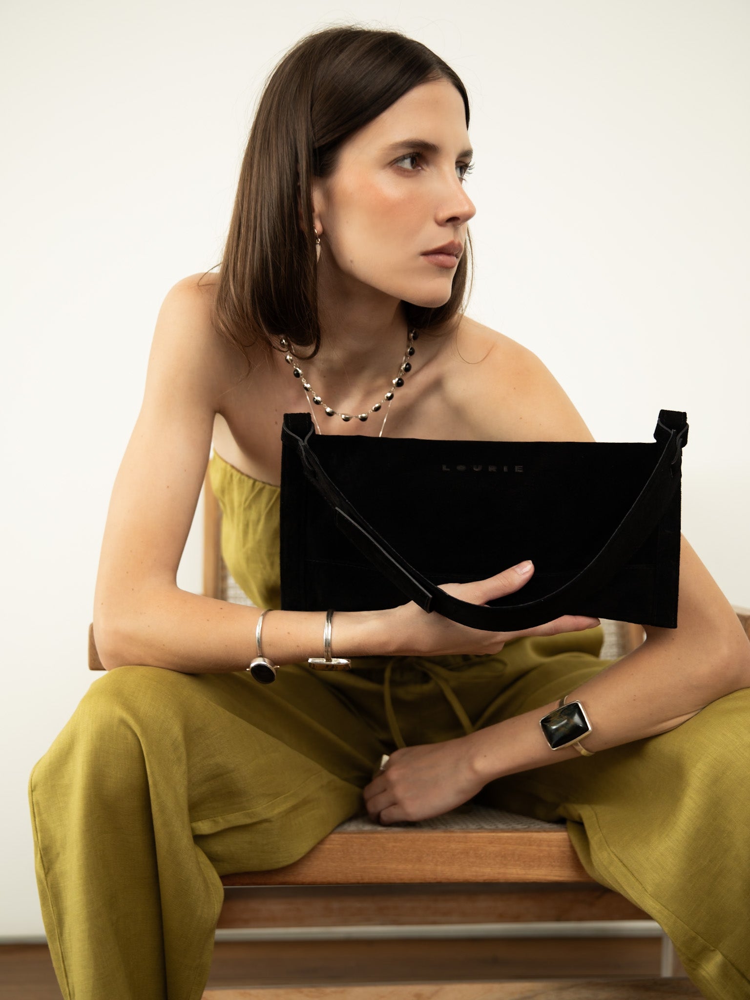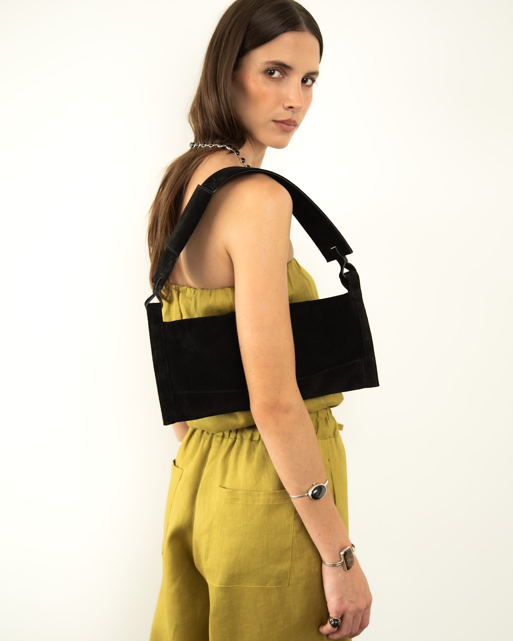 - Alça fixa com bolso embutido