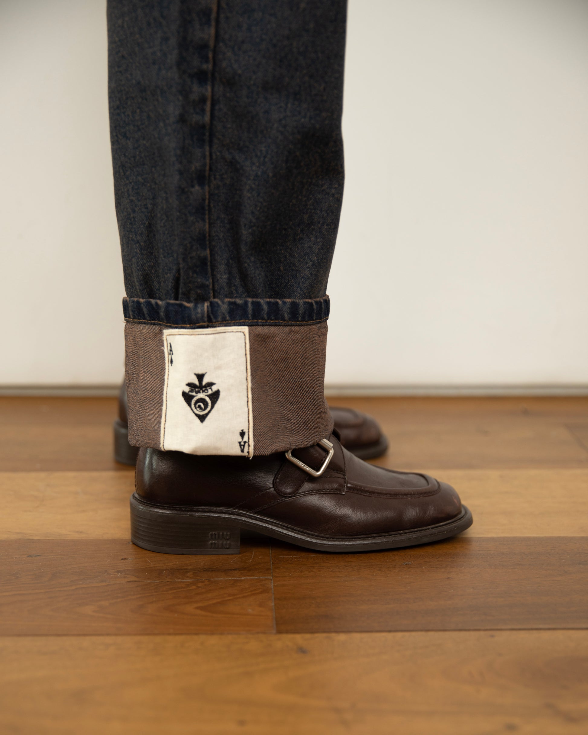 - Calça Jeans Barra Cartas Bordadas Marrom