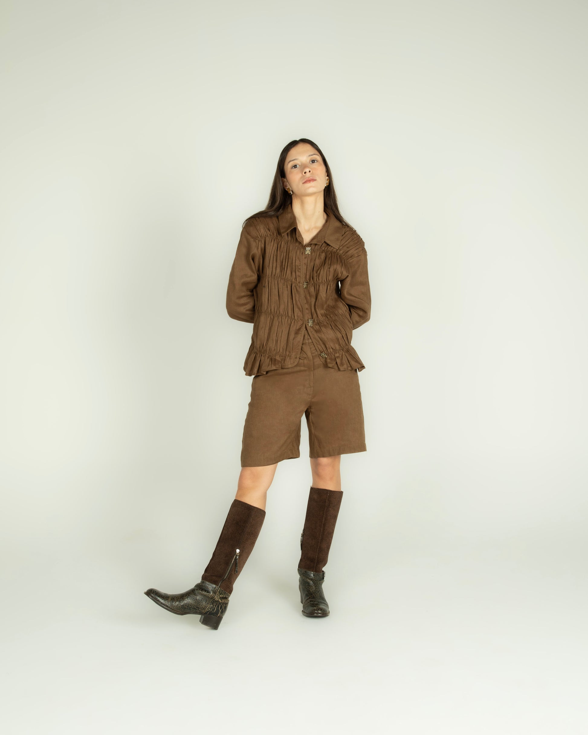 Camisa Drapeada Linho Marrom