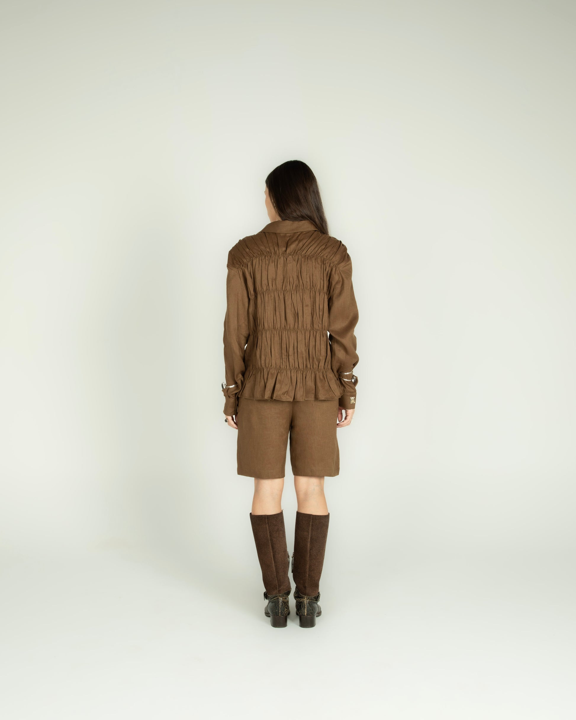 - Camisa Drapeada Linho Marrom